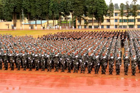 崔金賦書(shū)記在云南省全民國(guó)防教育協(xié)會(huì)學(xué)生軍訓(xùn)基地承訓(xùn)部隊(duì)首長(zhǎng)楊錫光大校陪同下冒雨檢閱了新生軍訓(xùn)隊(duì)伍。2017級(jí)22個(gè)方隊(duì)共3000余名新生,昂首挺胸、氣勢(shì)雄壯地接受校領(lǐng)導(dǎo)和部隊(duì)首長(zhǎng)的檢閱。
