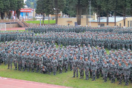 會上,教師代表方其仙、新生代表趙自良發言,云南省全民國防教育協會學生軍訓基地首長楊錫光大校講話,教官代表張東東作了發言。