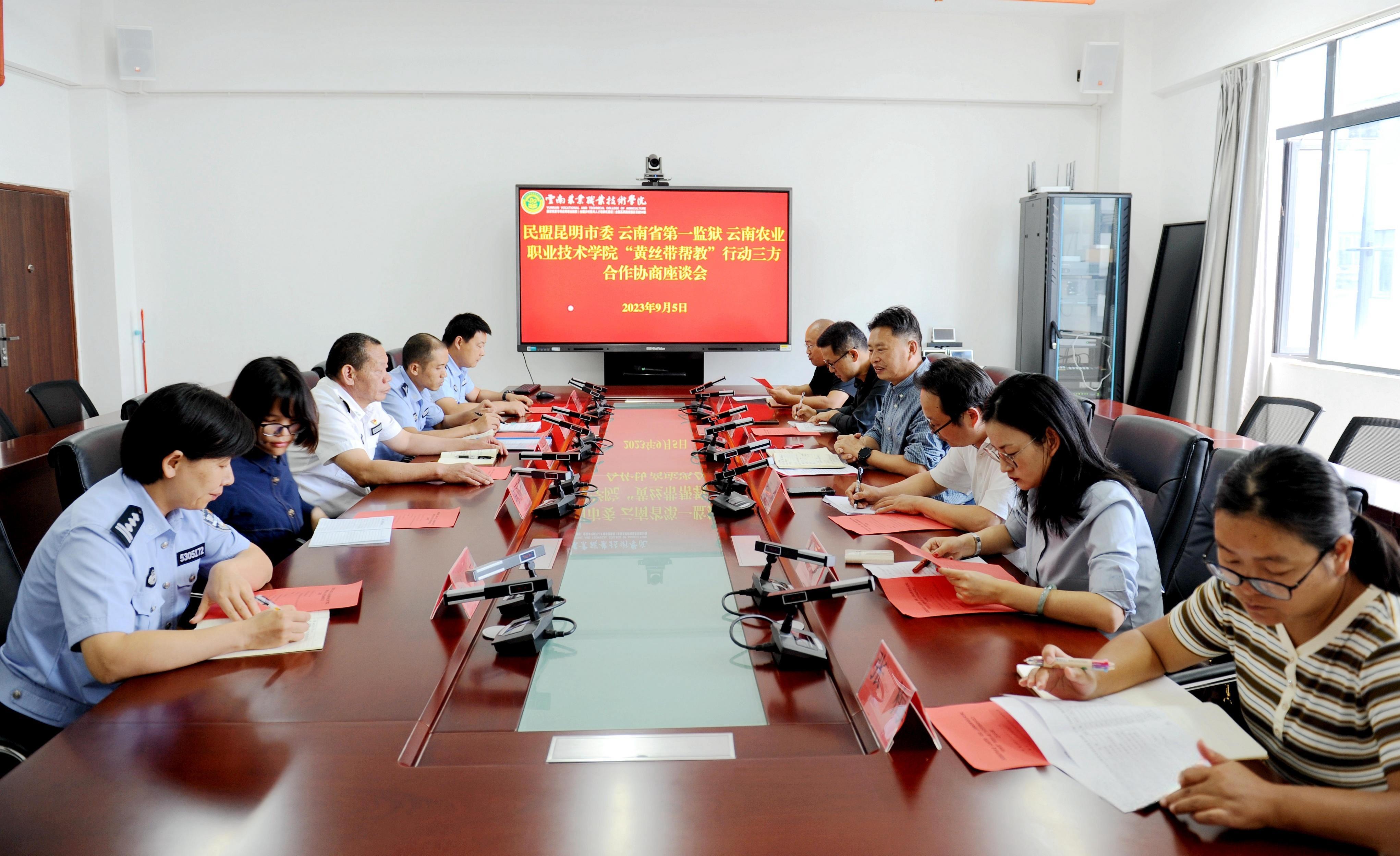 會議商定,由學(xué)院與民盟昆明市委共同在省一監(jiān)聯(lián)合搭建“黃絲帶幫教”社會服務(wù)平臺,由學(xué)院向省一監(jiān)提供農(nóng)業(yè)技術(shù)培訓(xùn)的師資、技術(shù)等支持,面向服刑人員開展各類培訓(xùn),增強其勞動技能;省一監(jiān)可根據(jù)學(xué)院需要,選派干警適時開展法制教育和警示教育等相關(guān)活動。