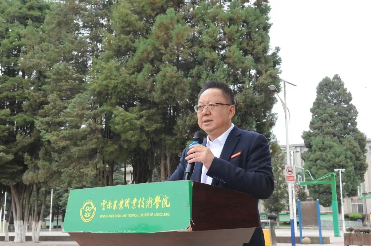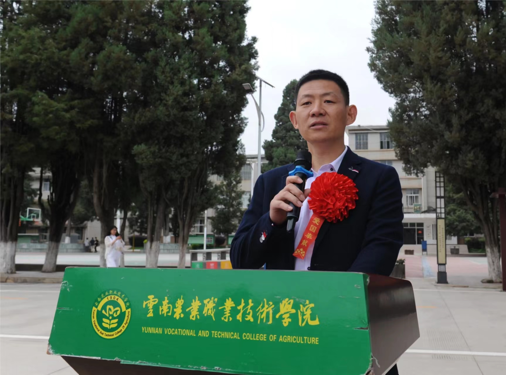 退轉軍人教師代表張新勝發言,發言中他跟大家分享了自己十多年的軍旅生涯歷程。他表示,來到具有歷史文化底蘊和光榮傳統的云農職是幸運的,戰友們要牢記軍隊光榮傳統,保持軍人優良作風,在不同的工作崗位上盡職盡責。同學們要努力學習,不斷提高自己的綜合能力,大家的夢想將從云農職揚帆起航。