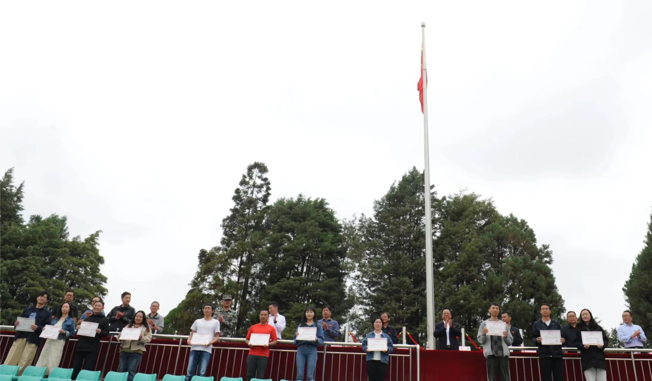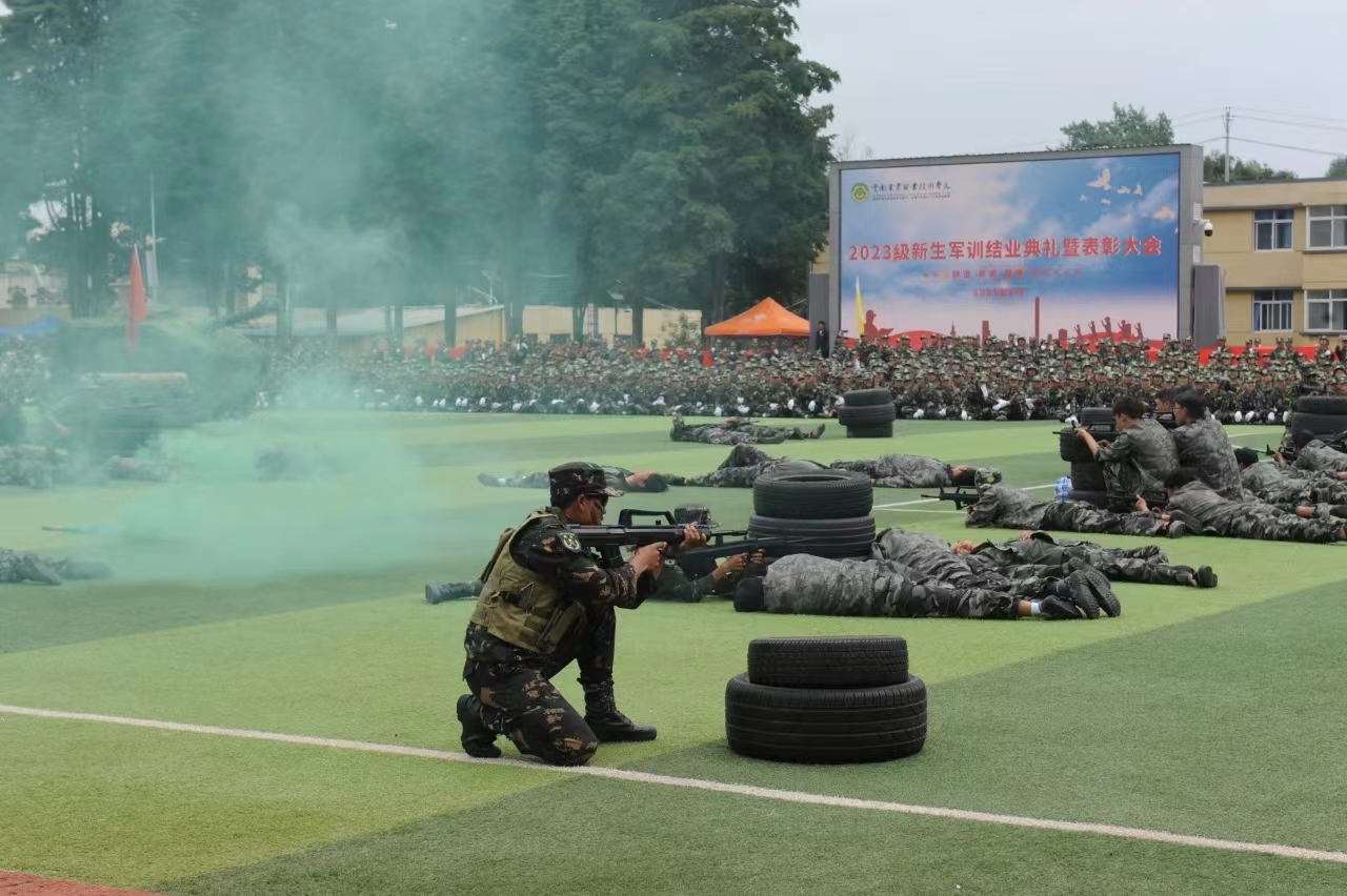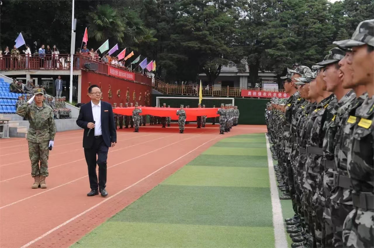 9月15日上午,云南農業職業技術學院2023級學生軍訓結業典禮暨表彰大會在小哨校區田徑場舉行。學院黨政領導;各行政部門;小哨校區各二級學院領導;新生班班主任、輔導員;全體駐訓教師等參加大會。大會由黨委副書記伍學龍主持。在莊嚴肅穆的升旗儀式中,大會拉開了帷幕,參加本次軍訓的2023級新生方陣軍容嚴整地接受了黨委書記文俊的檢閱。