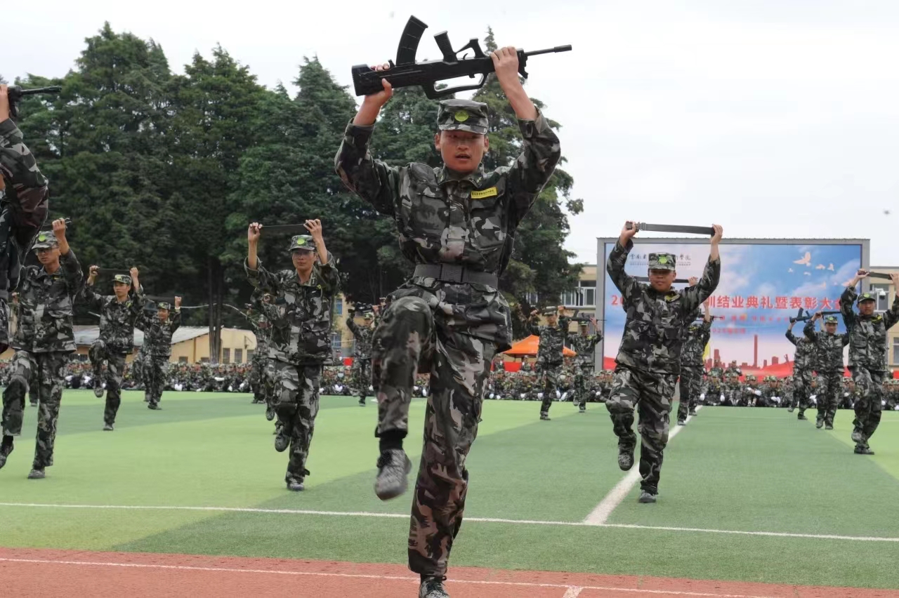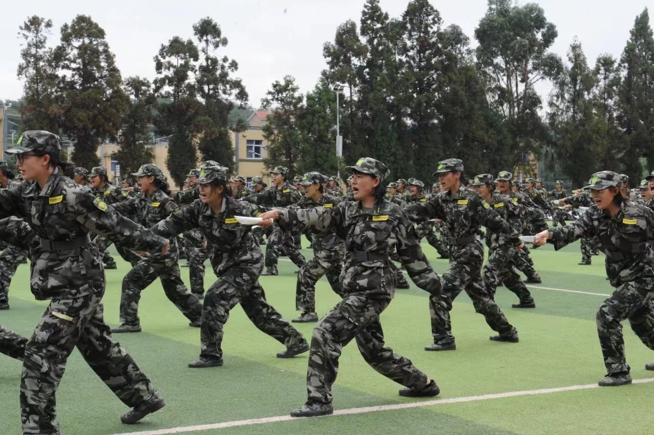 軍訓匯報表演開始了,“擒敵”致勝,“拳”釋風采。巍巍軍風,擒敵拳展現了農職學子的風采。巾幗風采匕首操表演,巾幗不讓須眉在她們挺拔的身姿,統一的步伐中體現得淋漓盡致。刺殺操共有十六動,同學們動作利落、氣勢凜凜,一令一動錘煉扎實作風,一招一式盡顯軍人本色。韻律操表演中,立正、稍息、跨立、蹲下、起立、脫帽戴帽、敬禮禮畢、停止間轉法等基本動作不停轉換,她們把軍訓中所學到的精髓表演得淋漓盡致。戰術方隊的表演動作矯健、配合默契、設計新穎、注重實戰,為軍訓結業典禮帶來別樣的觀感。有趣的擺字表演,令行禁止,盡展風采。