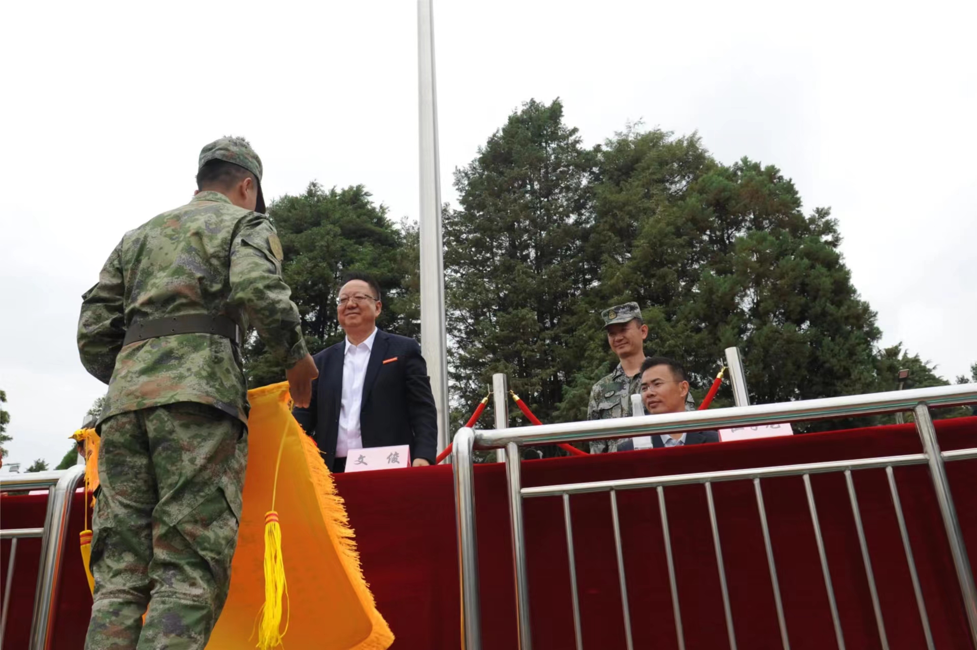 在這15天里,涌現出了大批優秀刻苦的教官、老師和學員,為表彰先進,決定對“優秀連隊”、“優秀教官”、“優秀學員”、“優秀駐訓教師進行表彰頒獎。黨委書記文俊向承訓部隊贈送錦旗。