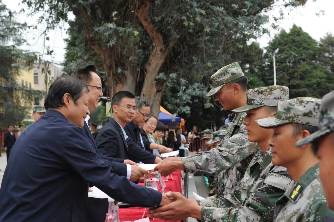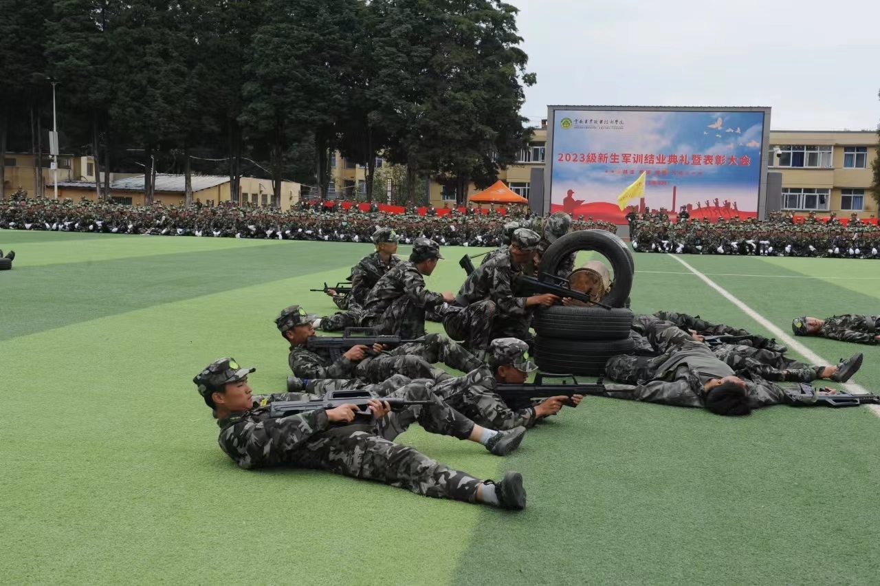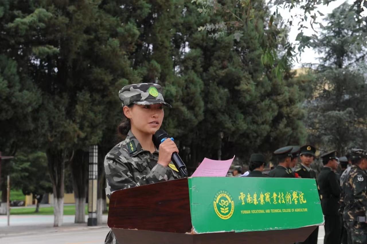 黨委書記文俊發言,他代表學院對順利完成軍訓任務的同學們表示親切的慰問和熱烈的祝賀!向昆明市五華區武裝部全體承訓教官以及駐訓教師表示誠摯的感謝!并向同學們提出三點希望和要求:首先,希望同學們能夠心懷夢想,志存高遠。要始終牢記總書記的囑托,堅定不移聽黨話、跟黨走,懷抱夢想又腳踏實地,敢想敢為又善作善成,立志做有理想、敢擔當、能吃苦、肯奮斗的新時代好青年;其次,希望同學們立德修身,自律自強。始終保持心有所畏、言有所戒、行有所止,學會艱苦奮斗、樂觀向上、誠實守信、追求卓越,學會感恩、學會謙讓、學會寬容、學會自律;最后,希望大家可以珍惜時光,勤奮學習。汲取營養,增長智慧和力量,從而獲得改變自身命運、實現人生價值的素質與能力。