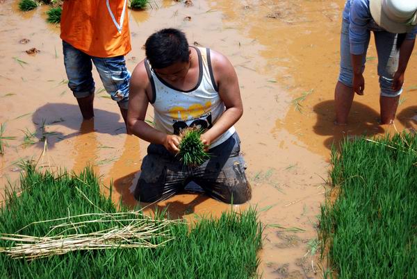 工作接近尾聲之際,碰巧迎來了“柬埔寨考察團(tuán)”一行10人,唐教授親自教授外國友人種植水稻,得到了“柬埔寨考察團(tuán)”的高度評價。