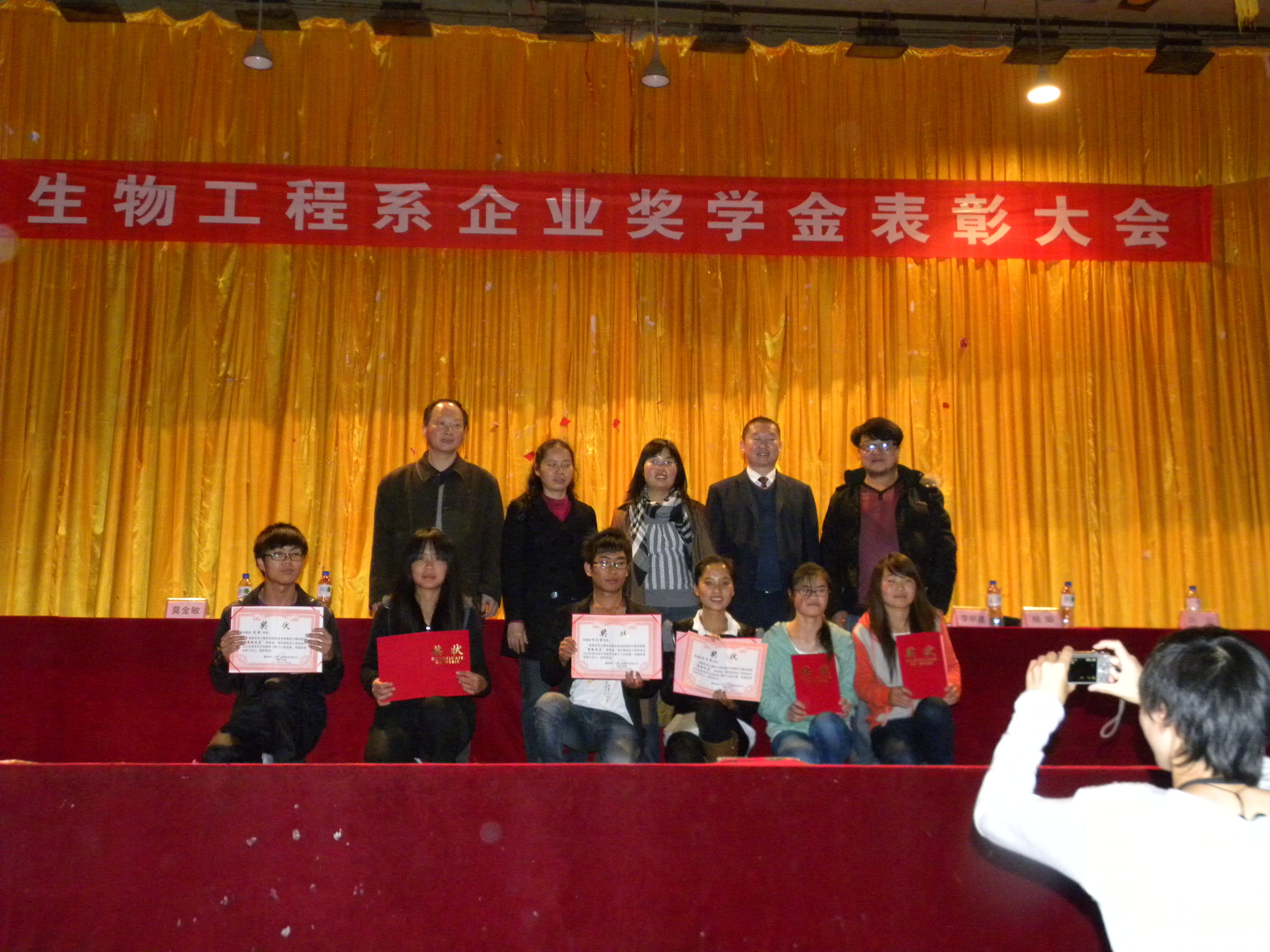 生物工程系主任王孟宇教授首先講話,他說,這次兩家企業(yè)獎(jiǎng)學(xué)金的頒發(fā)是生物工程系調(diào)整組建以來的一件大事,是我系長(zhǎng)期以來改革建設(shè)的又一成果。對(duì)兩家企業(yè)的各位來賓表示熱烈的歡迎,對(duì)獲得本次“鑫凱之星”和“鼎業(yè)之星”獎(jiǎng)學(xué)金的同學(xué)們表示熱烈的祝賀!學(xué)校是一個(gè)知識(shí)、科技、人才集中的場(chǎng)所,企業(yè)是把知識(shí)、科技通過市場(chǎng)轉(zhuǎn)化為效益的工廠。目前,我系正在深化教學(xué)改革,力求培養(yǎng)更多適應(yīng)社會(huì)需求的優(yōu)秀畢業(yè)生,為企業(yè)輸送更多的優(yōu)秀人才。我們希望通過與企業(yè)進(jìn)行科研、辦學(xué)等方面更廣泛、更深入的合作和交流,促進(jìn)雙方的共同進(jìn)步和發(fā)展;兩家企業(yè)文化也將積極影響生物工程系改革建設(shè)與發(fā)展的各個(gè)環(huán)節(jié)。今天頒發(fā)的企業(yè)獎(jiǎng)學(xué)金將變成一種無(wú)形的力量促進(jìn)學(xué)生茁壯成長(zhǎng),成為學(xué)生不斷奮進(jìn)的動(dòng)力和源泉