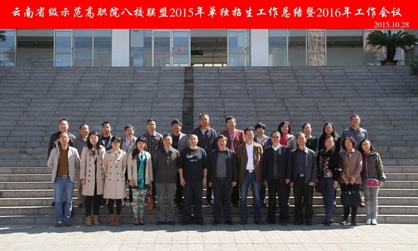 2015年10月28日,云南省級示范高職院八校聯盟2015年單獨招生工作總結暨2016年工作會議在云南能源職業技術學院召開。云南開發大學 云南國防工業職業技術學院、昆明工業職業技術學院、云南農業職業技術學院、云南國土資源職業技術學院、西雙版職業技術學院、云南經濟管理學院、云南林業職業技術學院、云南能源職業技術學院分管招生工作的校領導和相關處室人員參加會議。會議主辦方云南能源職業學院李其釩常務副院長致詞歡迎。開發大學、工職學院、農職學院院校領導先后作了講話。會議對八校聯盟2015年單獨招生工作進行總結、對2016年工作開展進行討論。