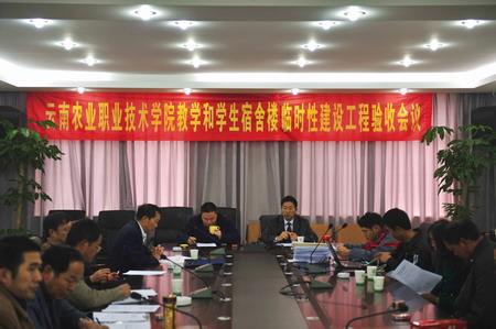 我院教學和學生宿舍樓建設工程竣工驗收會分兩個階段進行:上午由參加會議的我院基建領導小組及監理方、地勘方、設計方、施工方的領導對竣工工程進行現場檢查驗收,下午在會議室進行驗收大會。