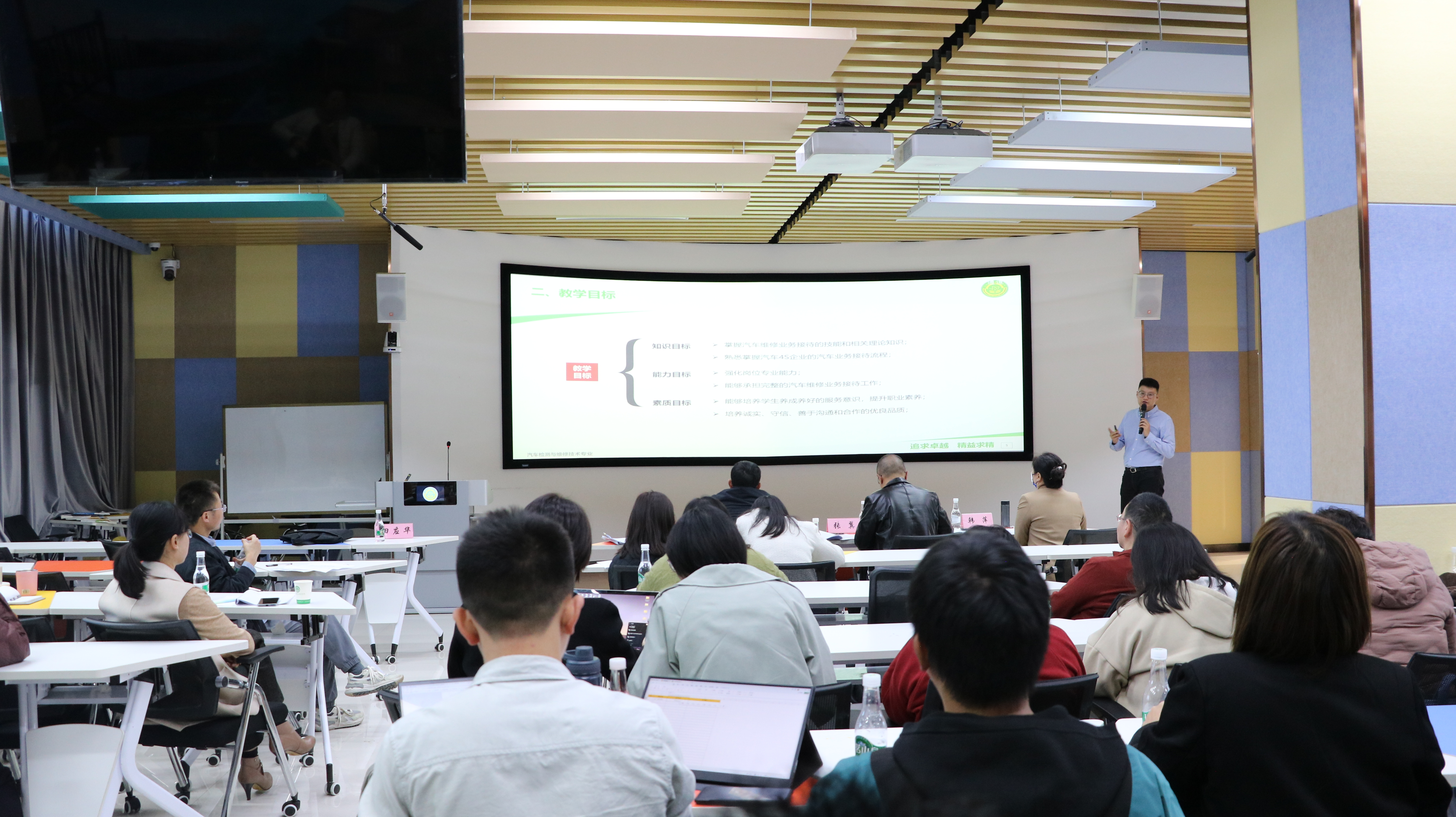 比賽現(xiàn)場,參賽教師通過說一門課程進行展示,參賽教師從課程性質(zhì)與定位、教學(xué)目標(biāo)、教學(xué)設(shè)計、教學(xué)效果、教學(xué)反思等方面進行了條理清晰的講述,充分展示參賽教師對課程的理解以及教學(xué)改革的探索。