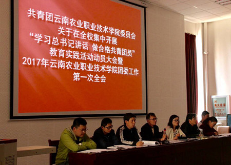 “學習總書記講話,做合格共青團員”教育實踐活動從2017年2月到9月集中開展。各二級學院團總支、各班團支部和全體共青團員將認真學習習近平總書記系列重要講話精神,把學習成效轉化為統一思想、保持一致、凝聚力量、推動工作的強大動力,使學院廣大青年團員更加緊密地團結在一起,在決勝全面建成小康社會進程中,在推動農職學院發展、培育中國特色社會主義合格建設者和可靠接班人方面發揮生力軍和突擊隊作用,以優異成績迎接黨的十九大勝利召開。(共青團云南農業職業技術學院委員會供稿)