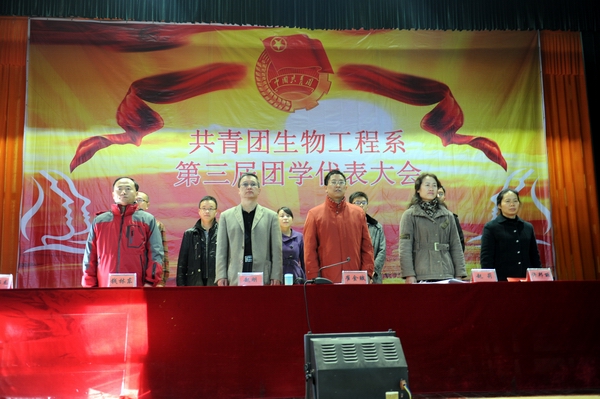 共青團(tuán)生物工程系第三屆團(tuán)學(xué)大會于11月22日在小哨大禮堂隆重召開。學(xué)院黨委書記崔金賦、黨委副書記趙剛、副院長趙莉,宣傳部副部長蔡永生、學(xué)生工作處副處長施碧強(qiáng)、畜牧獸醫(yī)系黨總支書記錢林東、生物工程系黨總支書記許邦麗、生物工程系黨總支副書記兼副主任李一源,畜牧獸醫(yī)系團(tuán)總支書記耿立春、管理與信息工程系團(tuán)總支書記李衛(wèi)東、生物工程系團(tuán)總支書記張蒂佐龍、生物工程系辦公室主任胡瓊、生物工程系招生就業(yè)科科長徐賢明等院系領(lǐng)導(dǎo)出席會議。