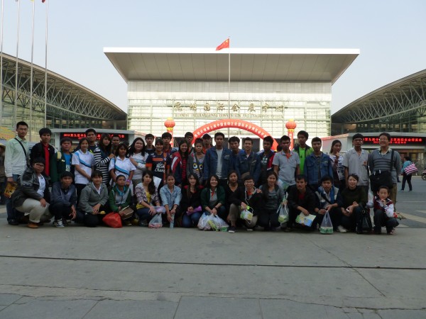 師生在昆明國(guó)際會(huì)展中心合影