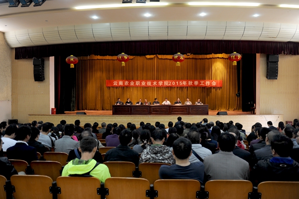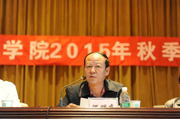 2015年9月13日周日上午,我校在茭菱校區大禮堂召開2015年秋季工作會。全體教職工參加,會議由何明東副院長主持。