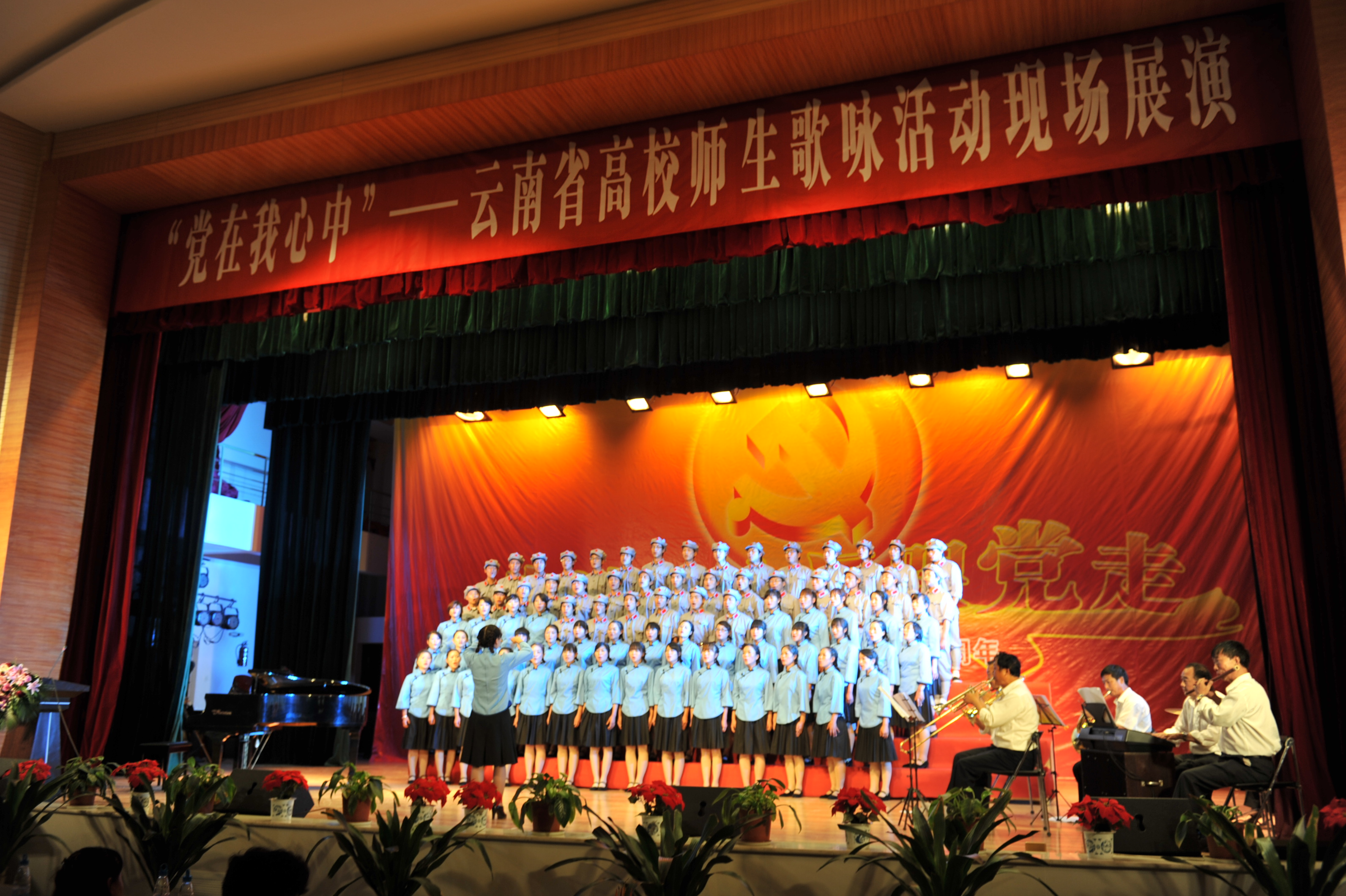 2011年6月20日下午2:30分,由中共云南省委高校工委、云南省教育廳主辦;云南廣播電視大學(xué)、云南大學(xué)等協(xié)辦的“黨在我心中”云南省高校師生歌詠比賽活動(dòng)在教育廳禮堂成功舉辦。我院俞浩副院長、宣傳部蔡永生副部長帶隊(duì)并出席了此次活動(dòng)。
