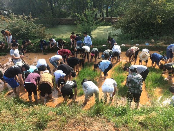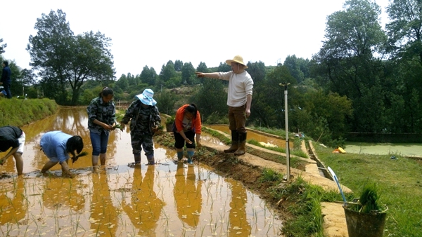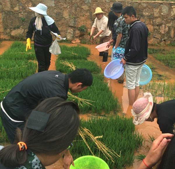 早上八點半,吳瀟瀟、劉琴、姜開梅、廖承菌、陳智平等老師就帶領著園藝技術專業的同學們開始了辛勤的勞動,唐世凱教授現場向同學們講解示范了土地平整、拔秧、施肥、栽秧、株行距控制、補苗等水稻種植各個環節的技術要領。雖然同學們都是第一次栽秧苗,但經過唐世凱教授的細心講解、認真示范,很快便掌握了相關要領。栽秧過程中,同學們干勁十足、相互協作,稻田間充滿了同學們的歡笑聲,洋溢著青春的活力。