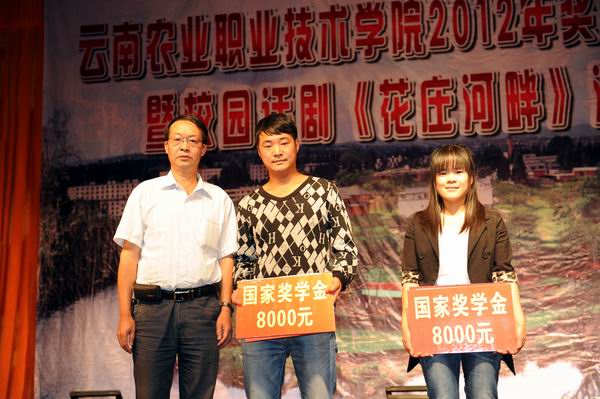 俞浩副院長為榮獲國家獎學(xué)金的同學(xué)頒獎,每人八千元;趙莉副院長為榮獲云南省政府獎學(xué)金的同學(xué)頒獎,每人六千元;黨院辦主任金吉斌、學(xué)生工作處處長周誠為榮獲國家勵志獎學(xué)金的同學(xué)頒獎,每人五千元;生物工程系黨總支書記許邦麗、園藝與園林工程系黨總支書記董文紅、畜牧獸醫(yī)系黨總支書記錢林東為榮獲云南省政府勵志獎學(xué)金的同學(xué)頒獎,每人四千元;學(xué)生工作處副處長施碧強(qiáng)、生物工程系黨總支副書記李一源、管理與信息工程系黨總支副書記徐開宏為榮獲學(xué)院獎學(xué)金的同學(xué)頒獎,每人一千元。
