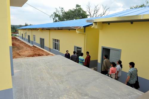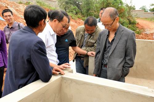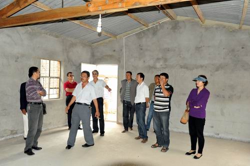 驗收小組檢查驗收“農(nóng)牧場臨時建筑”工程