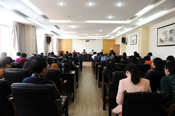 2015年3月13日下午14:30在茭菱校區三樓會議室召開黨委中心組學習會議。學校黨政領導、副科以上干部參加會議,會議由何明東副院長主持。
