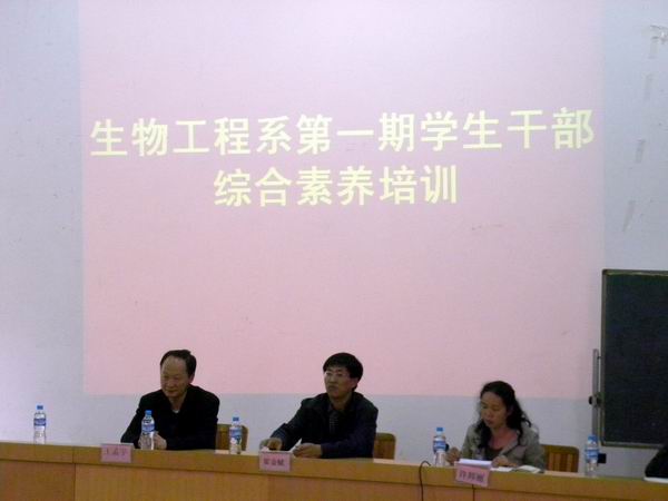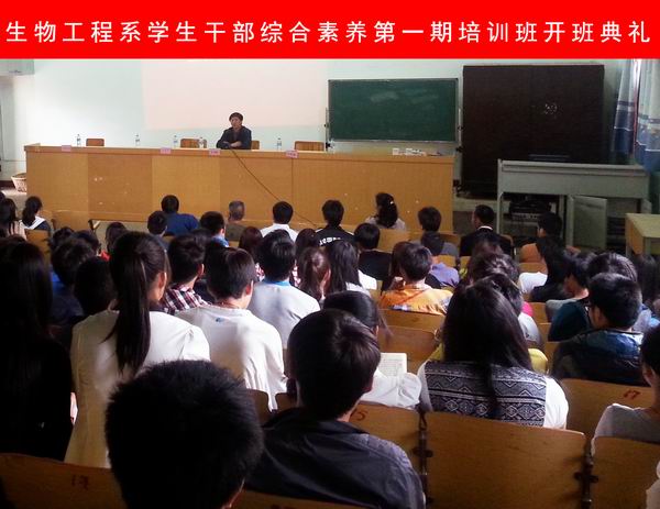 2013年5月6日,經過緊張的籌備,精心的組織,生物工程系學生干部第一期綜合素養培訓班在小哨校區農藝樓階梯教室正式開班。生物工程系特邀學院黨委書記崔金賦同志出席開班儀式,并請崔書記為學生做了專題講座。