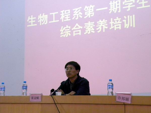 通知中心黨委書記崔金賦同志在生物工程系學生干部第一期綜合素養培訓班開訓第一講