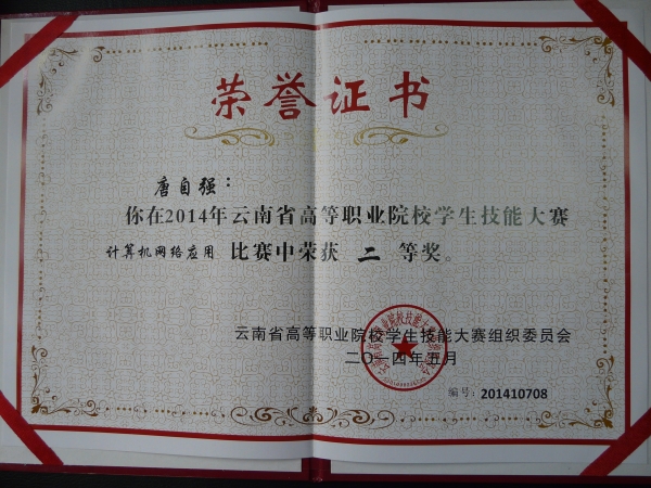 20144月,我校經濟管理學院在省教育廳舉辦的第二屆云南省高等職業院校學生技能大賽中,喜獲優異成績,共榮獲一項二等獎、三項三等獎。