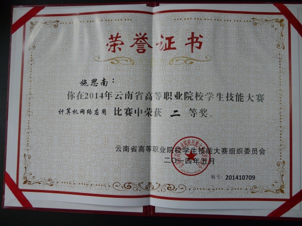 在云南民族大學職業技術學院(呈貢校區)分賽區,由張丁月、董絢、曾劼為指導老師,文秘專業的參賽學生在文秘專業技能大賽中榮獲個人三等獎;由楊銳老師和崔慶雄老師帶隊,玉冰、周宏興老師指導的六名計算機專業的同學在計算機網絡應用技能大賽中分別榮獲省賽二等獎三等獎;在昆明冶金高等專科學校企業經濟管理沙盤比賽現場,由郭正蓉、梁盈、徐開宏為指導老師,八名參賽學員進行了一場激烈比賽,最終榮獲省級大賽三等獎。由毛偉芳、蔡明杰老師指導的市場營銷四名參賽學員也表現不俗。