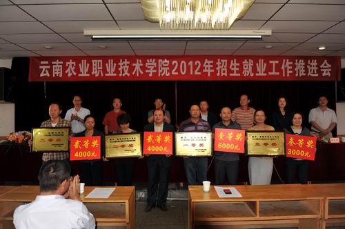 彭志遠(yuǎn)院長(zhǎng)首先講話,他說(shuō),今天我們隆重召開2012年招生就業(yè)工作推進(jìn)會(huì),規(guī)格比以往更高,參加的人數(shù)更多,說(shuō)明全院上下高度重視,招生就業(yè)工作是關(guān)系到學(xué)院生存與發(fā)展的大事!我院自2009至2011年招生人數(shù)穩(wěn)步上升, 去年突破2000人大關(guān),取得了可喜的成績(jī)!但我們與昆明其他示范性高職高專相比還有差距。今年我們要奮起直追,拉近與他們的距離。第二,今年招生我們要突破2300人,要通過(guò)各種措施加大招生工作的力度,請(qǐng)大家進(jìn)言獻(xiàn)策。下一步還要調(diào)整優(yōu)化一些專業(yè)結(jié)構(gòu),要向好專業(yè)傾斜。第三,我院2011年畢業(yè)生的就業(yè)工作有新突破,簽約率大幅上升,榮獲省教育廳頒發(fā)的“2011年高校畢業(yè)生就業(yè)工作目標(biāo)責(zé)任考核一等獎(jiǎng)”。彭院長(zhǎng)指出我們要把今天的會(huì)開好,進(jìn)一步做好2012年的招生就業(yè)工作,使招生就業(yè)百尺竿頭更進(jìn)一步!