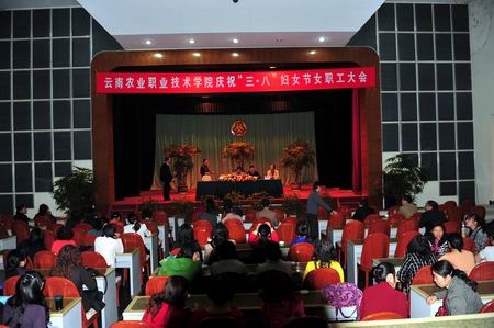 通知中心為隆重慶祝“三八”婦女節,以及對學院全體女教工的慰問,2011年3月5日下午,在風景秀麗的澂江撫仙湖筆架山莊,學院工會組織召開了云南農業職業技術學院婦女職工大會,這是繼學院2006年首屆之后的第二屆婦女職工大會。學院黨委書記崔金賦、院長彭志遠、黨委副書記趙剛、副院長何明東、副院長俞浩等出席了會議,學院全體女教工以及中層干部共計200余人參加了此次大會。會議由學院工會主席、黨委副書記趙剛主持。