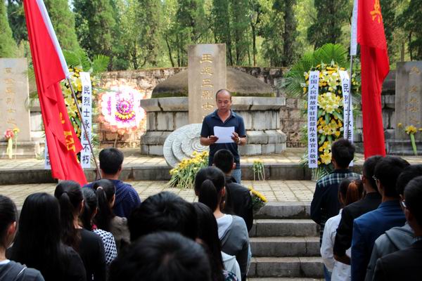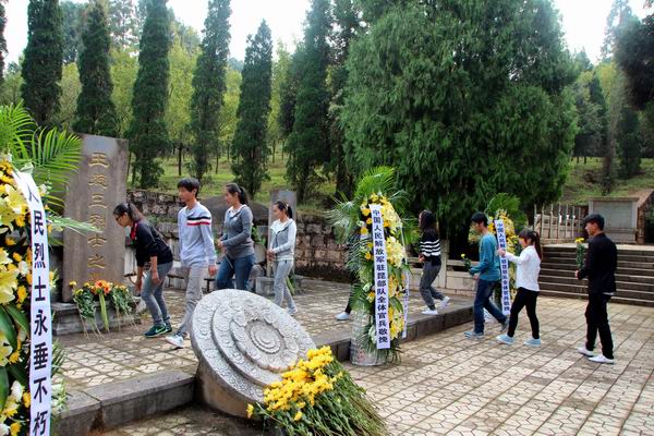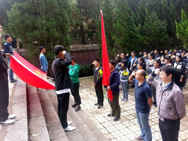 2014年8月31日第十二屆全國人民代表大會常務委員會第十次會議決定將9月30日設立為烈士紀念日。為貫徹落實中央有關文件及《共青團中央在青年中廣泛開展“慶祝新中國65華誕青春踐行社會主義核心價值觀”主題活動的通知》精神,引導大學生緬懷烈士功績、弘揚烈士精神,培養大學生的愛國主義、集體主義精神和社會主義道德風尚,培育和踐行社會主義核心價值觀,云南農業職業技術學院共青團在昆明北郊黑龍潭公園開展紀念王德三烈士活動。參加活動的有院團委副書記何橋和團委老師們,以及學校青年團員代表。