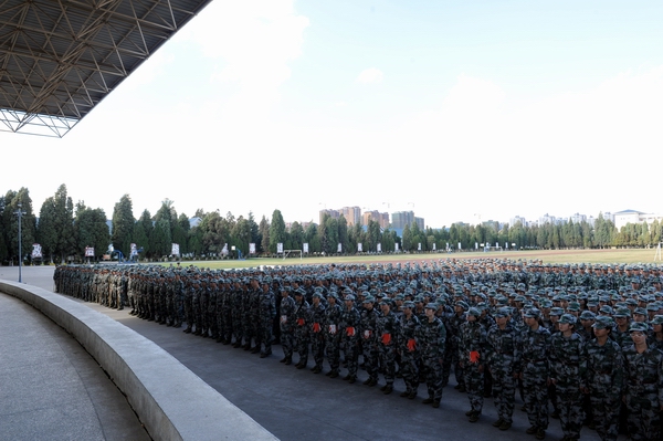 崔書記鼓勵(lì)軍訓(xùn)新生堅(jiān)持到底