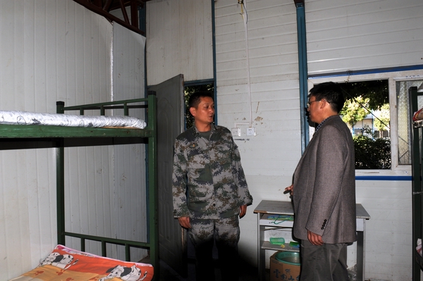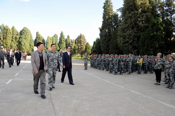 11月4日,學(xué)院黨委書記崔金賦、院長(zhǎng)李永忠在保衛(wèi)處長(zhǎng)李昆、昆明民族干部學(xué)院一大隊(duì)副大隊(duì)長(zhǎng)熊云海的陪同下,分別深入軍訓(xùn)基地視察慰問駐訓(xùn)教師及參訓(xùn)學(xué)員,并察看2014級(jí)學(xué)生的軍訓(xùn)情況。學(xué)院副院長(zhǎng)何明東、趙莉、俞浩及各系部黨總支書記等領(lǐng)導(dǎo)老師參加了慰問活動(dòng)。大家聽取了學(xué)院駐訓(xùn)工作小組的工作匯報(bào),并來到訓(xùn)練場(chǎng)地查看了各系參訓(xùn)學(xué)生的參訓(xùn)情況,隨后查看了學(xué)生宿舍。同學(xué)們看到各位領(lǐng)導(dǎo)前來看望都非常激動(dòng)。