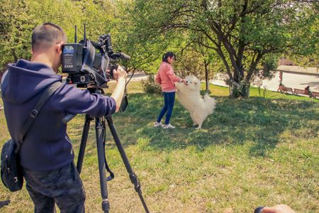 媒體對摩耶學院狗狗進行拍攝