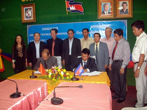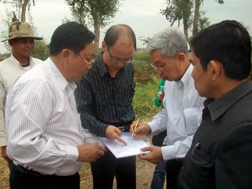 根據(jù)學(xué)院的部署,我院后勤管理處處長、基建辦主任楊東云、生物工程系主任王孟宇、園藝與園林工程系主任唐世凱和基礎(chǔ)部副主任李憬一行四人于2012年1月13日至21日赴柬埔寨就示范園建設(shè)有關(guān)事宜進行了實地考察和具體磋商,并與班省農(nóng)業(yè)廳簽訂了《示范園合作會談紀要》。《紀要》確定了在班迭棉吉省馬萊縣桑特費普鎮(zhèn)坡羅村建設(shè)面積為10公頃的示范園,在示范園開展我國糧食和園藝作物新品種與新技術(shù)展示、試驗、示范,通過新品種、新技術(shù)推廣和農(nóng)業(yè)技術(shù)培訓(xùn)等,提高當(dāng)?shù)丶Z食面積單產(chǎn)量,帶動周邊農(nóng)業(yè)增效、農(nóng)民增收、農(nóng)村發(fā)展。