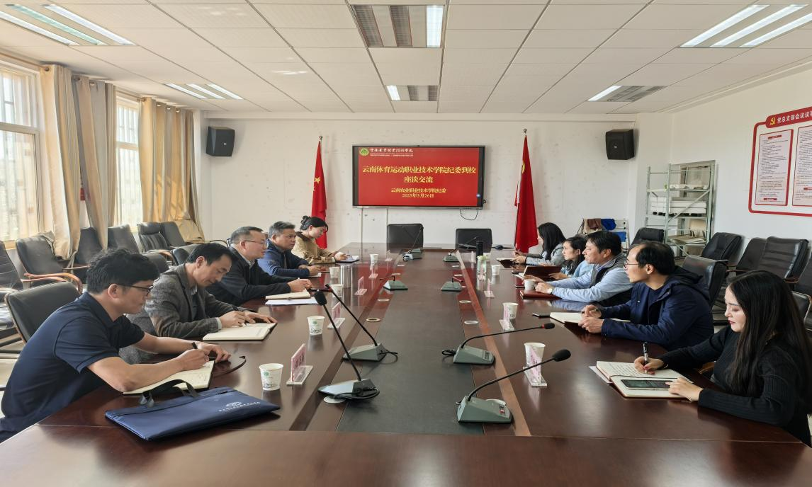 柳勇書記對金吉斌書記一行的到來表示熱烈歡迎,并就學校的基本情況、紀委組成情況和今年以來的工作開展情況進行了詳細介紹,讓來訪嘉賓對學校紀檢監察工作的基礎與現狀有了全面了解。金吉斌書記則結合云南體育運動職業技術學院在人才培養、特色活動打造、學習教育強化等方面的經驗,分享了該校在廉潔文化建設中的創新舉措。隨后,雙方圍繞加強政治監督、提升案件查辦質效、推進“三化”建設、強化紀檢監察隊伍能力,以及深化廉潔文化建設等核心議題展開熱烈討論。