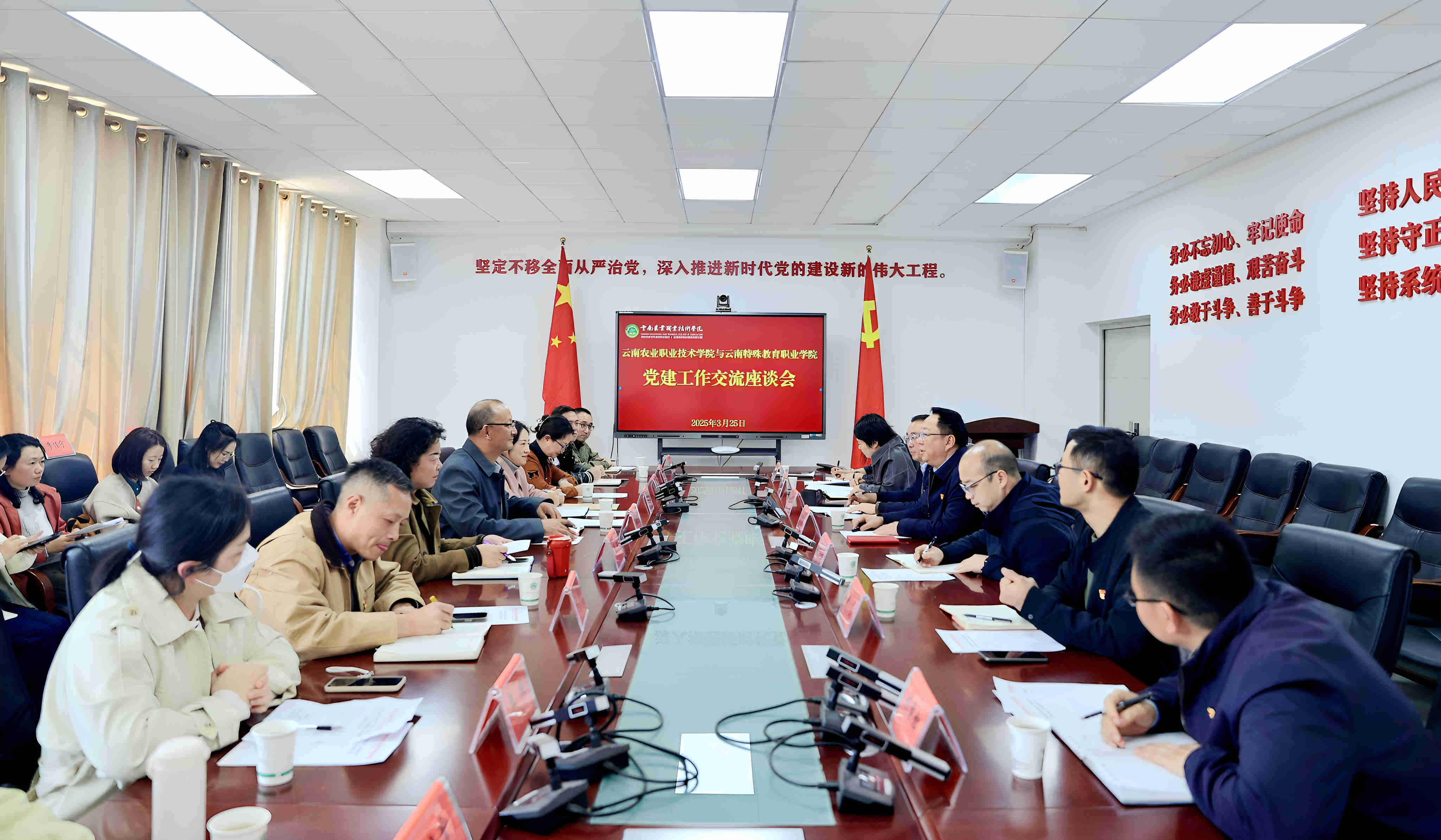 3月25日,云南特殊教育職業學院黨委書記孫繼先率本校辦公室、組織部、校團委等部門同志一行15人到我校進行考察調研。我校黨委書記文俊、黨委副書記楊波及辦公室、組織部、農學與園藝技術學院、畜牧獸醫學院相關人員參與調研。