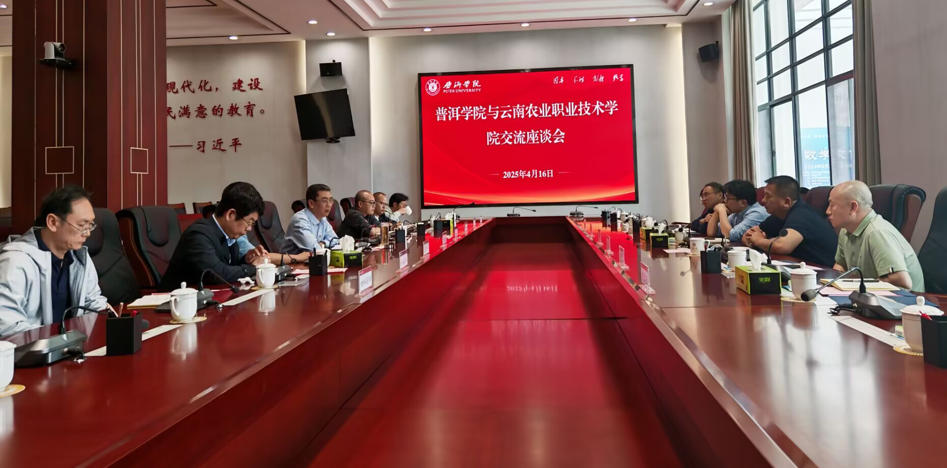 交流座談會上,陳太安校長對普洱學(xué)院在辦學(xué)治校、學(xué)科建設(shè)等方面取得的成就予以高度評價,同時詳細(xì)介紹了我校的專業(yè)設(shè)置、社會服務(wù)開展情況以及發(fā)展規(guī)劃,表達(dá)了在專業(yè)建設(shè)、科研創(chuàng)新、教師培養(yǎng)、職業(yè)教育國際化及技術(shù)服務(wù)等領(lǐng)域的合作意愿。楊斌校長介紹了普洱學(xué)院依托獨特的區(qū)位優(yōu)勢,在中藥資源開發(fā)、茶葉與咖啡產(chǎn)業(yè)研究領(lǐng)域的成果,希望雙方未來能在農(nóng)業(yè)技術(shù)推廣、畜牧養(yǎng)殖模式創(chuàng)新及地方經(jīng)濟服務(wù)等方面深化合作,實現(xiàn)優(yōu)勢互補、協(xié)同發(fā)展。