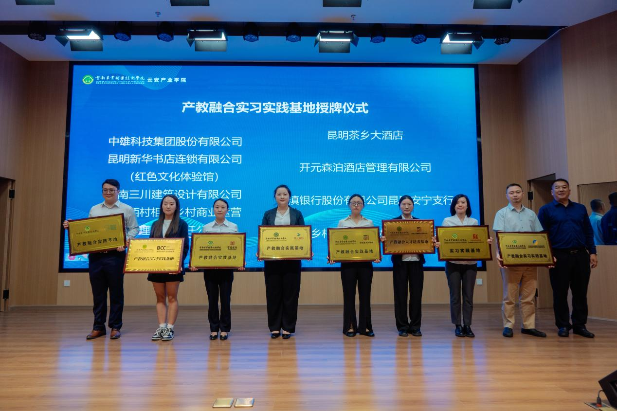 在研討交流環節,企業代表云南智嵐星農業科技有限公司董事長朱凱、中心皇冠假日酒店人力資源經理陳姍姍圍繞職業教育與產業協同發展等議題,結合自身行業經驗與發展需求,各抒己見、深入探討,為深化產教融合建言獻策。開幕式現場舉行了“雙向授牌”儀式。云安產業學院向14家知名企業授予“產教融合實習實踐基地”牌匾,同時,40家企業同步向云安產業學院授予“產教融合人才培養基地”牌匾,這一舉措進一步強化了校企雙方的合作紐帶,為實現資源共享、優勢互補、協同育人奠定了堅實基礎。