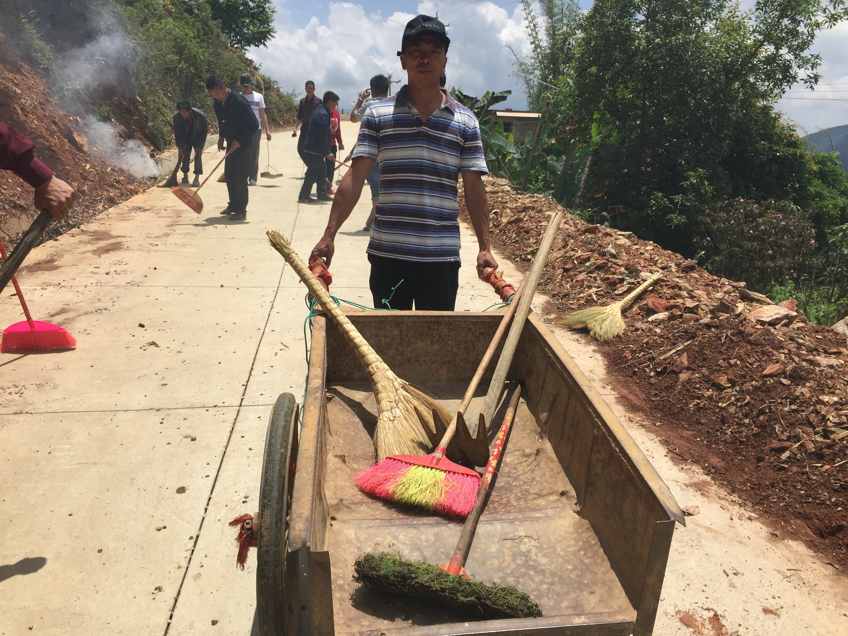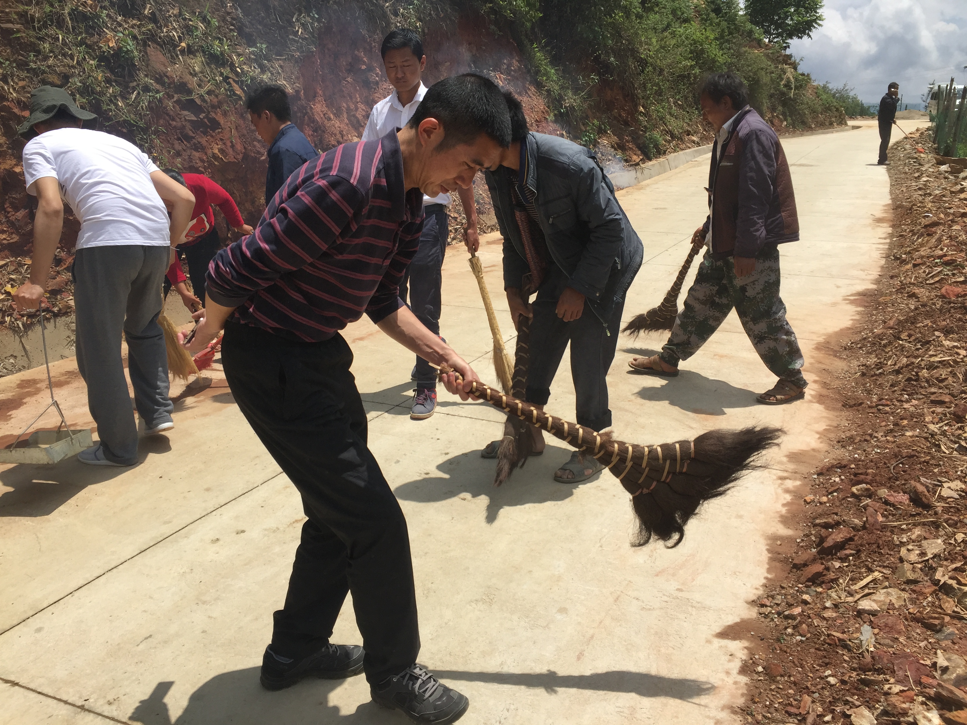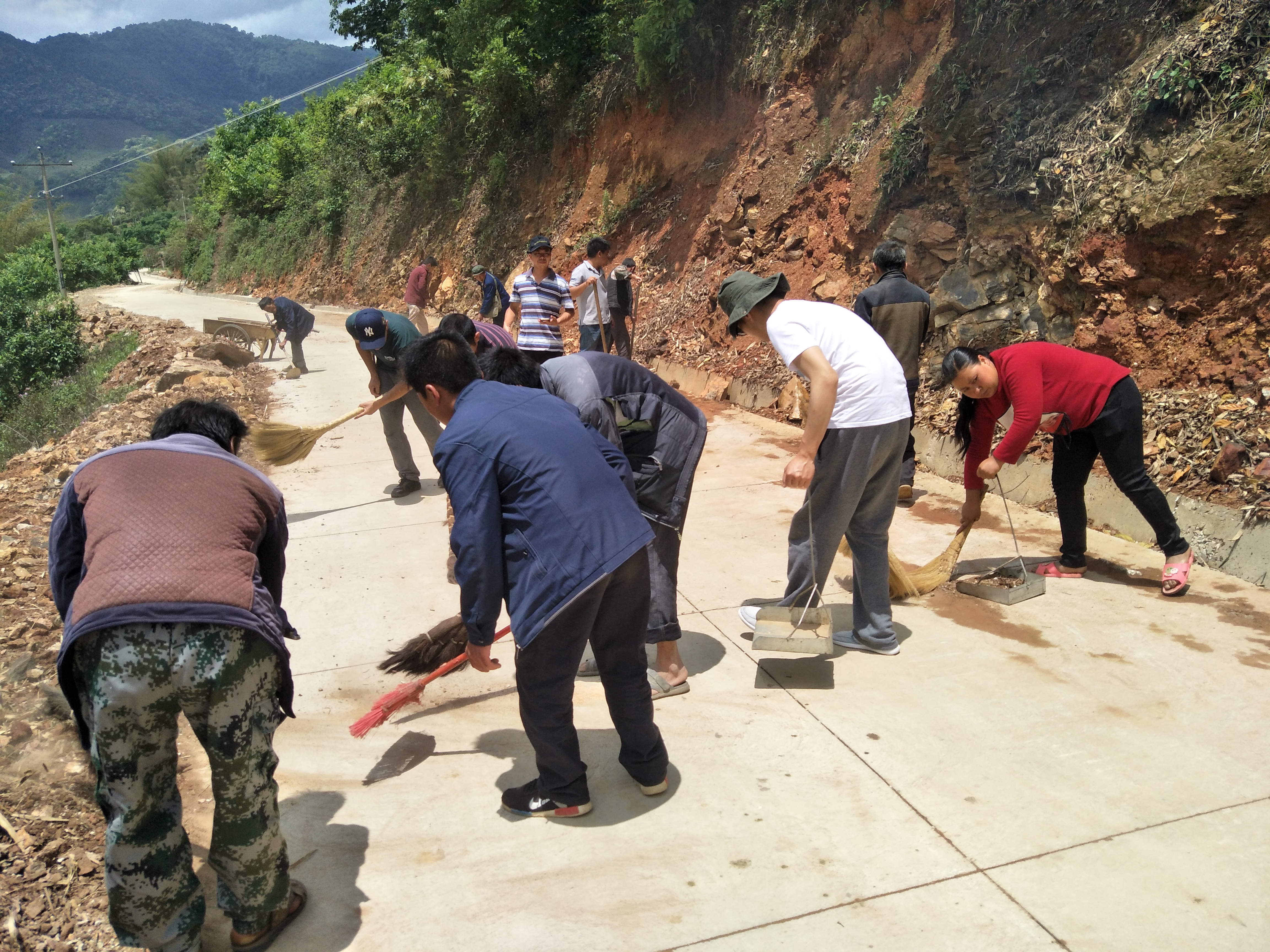 由龔家寨村黨員干部和駐村扶貧工作隊黨員帶頭,對龔家寨村公共道路上的沙石、糞堆、生活垃圾進行徹底清除,指導農戶清理房前屋后亂堆放的雜物、垃圾。充分發揮黨員模范帶頭作用,以實際行動向村民宣傳愛護環境衛生的意義,激發了村民投身環境衛生整治工作的熱情。