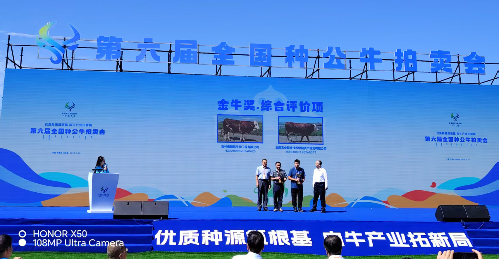 種畜技術研發中心自參加全國第二屆種公牛拍賣大會以來,已累計獲得獎項13項,其中金牛獎7項、銀牛獎6項,并連續2次摘得全國種公牛拍賣會“標王”稱號。此次再獲獎,使黨建引領產業發展的實績得到進一步彰顯,“黨建+業務”深度融合的成果再一次得到了體現。