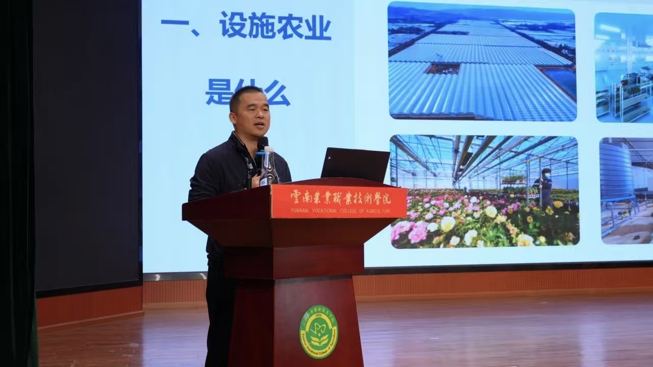 金曉偉先生從云南設施農業的發展路徑、產業發展現狀、現代農業技術體、設施農業實踐案例等多個維度切入,梳理了設施農業從傳統種植到智能化管理的發展歷程,對比了不同階段的技術應用案例,詳細解讀了智能溫室、無土栽培、物聯網監測等前沿技術的實際應用場景與未來發展潛力,同時深入分析了設施農業在保障國家糧食安全、推動農業現代化轉型中的關鍵作用,為師生們搭建起“理論知識+產業實踐”的認知橋梁。