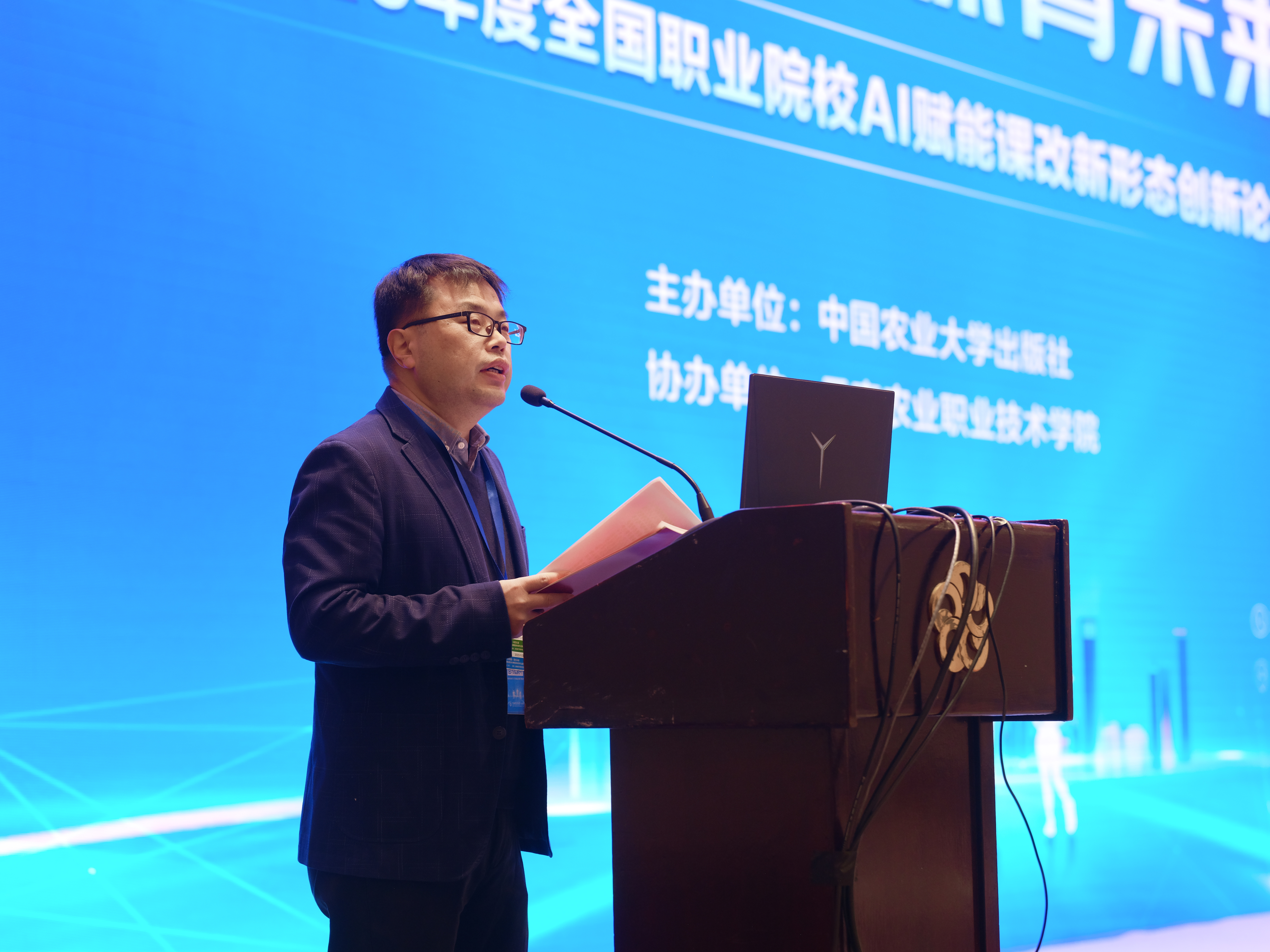 11月30日論壇開幕式上,中國農業大學出版社社長董夫才代表主辦方致歡迎辭,向我校大力支持和協助表示最誠摯的感謝。表示本次論壇聚焦“五金”建設中AI技術的應用路徑,旨在通過政策解讀、案例分享等形式,為院校和企業提供可復制、可推廣的實踐范式,推動AI與職業教育課程改革、教材建設的深度融合,助力現代職業教育高質量發展。我校校長陳太安在論壇上介紹了學校辦學特色與發展規劃,表明我校始終扎根高原沃土,秉持“強農興農”初心使命,深耕農業職業教育領域。通過“省-廳-校”三級科技平臺體系建設,打造了“一頭牛、一枝花、一粒種、一味藥、一只禽”的“五個一”技術服務品牌,核心服務區域社會經濟發展的能力持續提升。“十五五”期間,學校將以“雙高”建設為統領,以“五金”建設為抓手,進一步提升對區域社會經濟發展的貢獻度。
