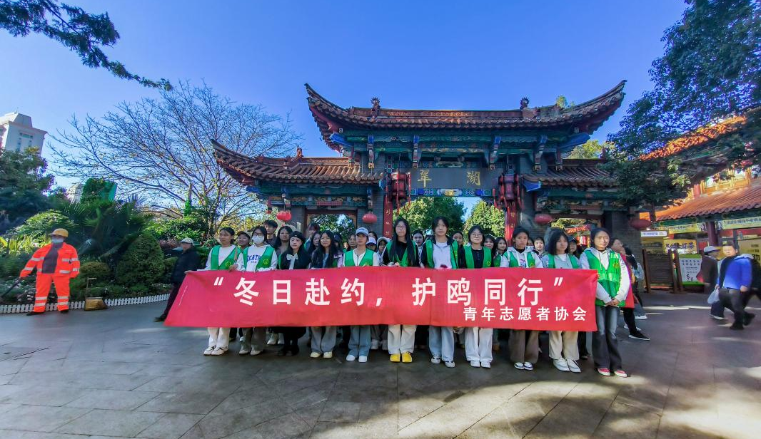 通知中心每年11月至次年3月,來自西伯利亞的紅嘴鷗便會如約飛抵云南翠湖、滇池等水域,成為冬日里最動人的生態風景線。為提升同學們對紅嘴鷗的認知與保護意識,倡導文明觀鷗、愛鷗行為,減少人為傷害,踐行綠色理念,彰顯青年擔當,校團委青年志愿者協會于2025年12月12日組織同學統一乘車前往昆明翠湖公園,開展“冬日赴約·護鷗同行”公益活動。