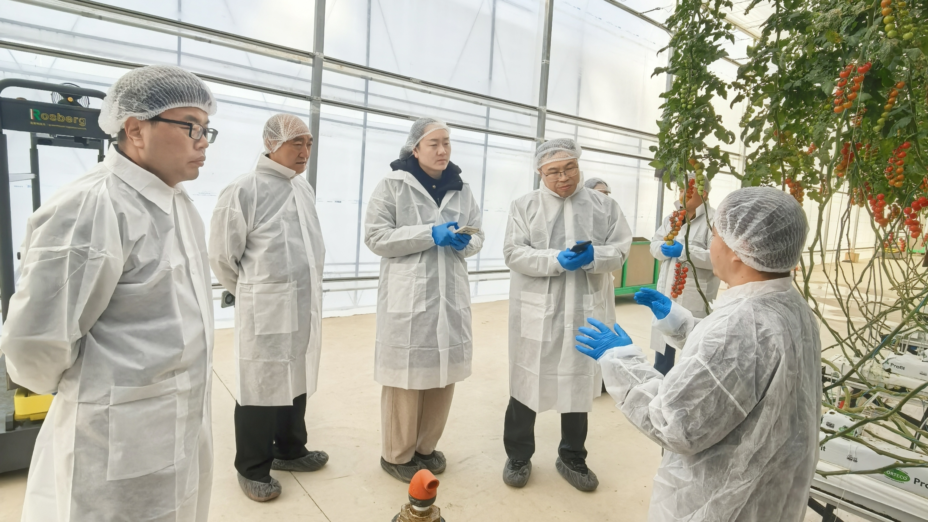 1月21日,調研組首站走進云南涵乾農業科技有限公司昌寧基地調研,受到了公司董事長金曉偉先生的熱情接待。昌寧基地占地270余畝,主攻高品質特色番茄生產,調研組一行實地考察了基地設施溫室串收番茄種植園區,深入了解企業在設施農業“投建管運”全產業鏈服務中的核心技術與實踐經驗。雙方人員圍繞大型智能溫室的農業設施設備運維、工廠化種苗生產、高附加值園藝作物種植、商品化與營銷等生產崗位工作流程、技術規程開展了深入研討,為校企合作開發《設施工廠化種苗生產》等崗位綜合技能工作手冊教材提供了一手信息。