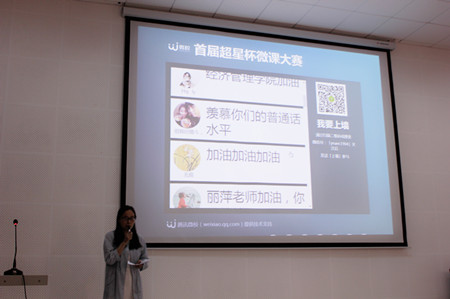 比賽現(xiàn)場氣氛活躍,參賽老師精心準備作品,播放微課作品,講述制作的思路與意義,最后由評委精彩點評。現(xiàn)場學生通過網(wǎng)絡投票的方式,給參賽老師加油打氣,在比賽間隙進行了三次抽獎互動,現(xiàn)場氣氛異常活躍。最后,經濟管理學院李莎莎,農學與生物技術學院趙燚、胡瓊的兩組作品并列第一,其他選手分別獲得二等獎、三等獎。
