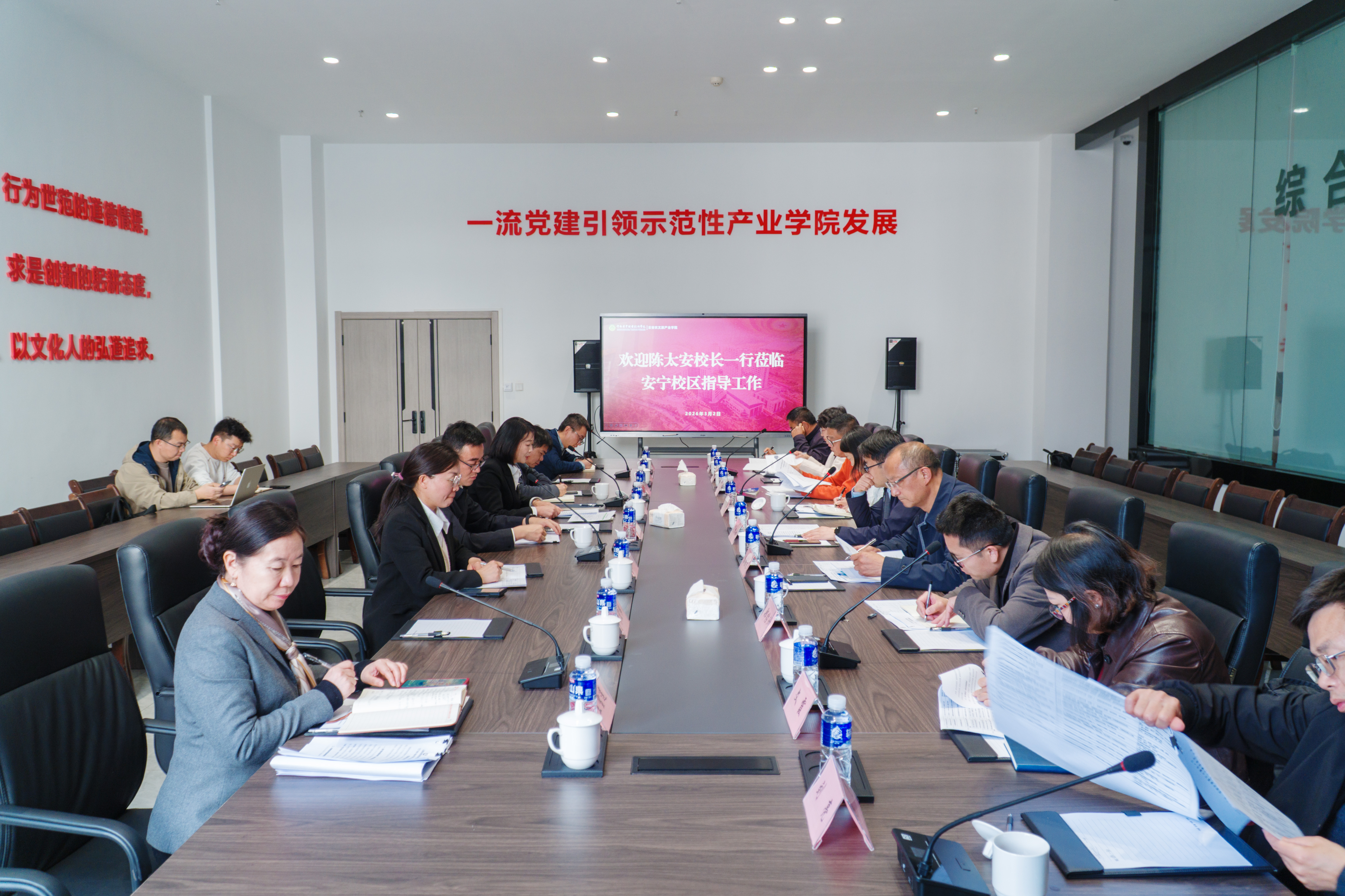 會前,陳太安校長一行先后前往學院學生工作辦公室、學生宿舍開展實地檢查,深入教學課堂隨堂聽課,全面核查開學各項工作落實情況。