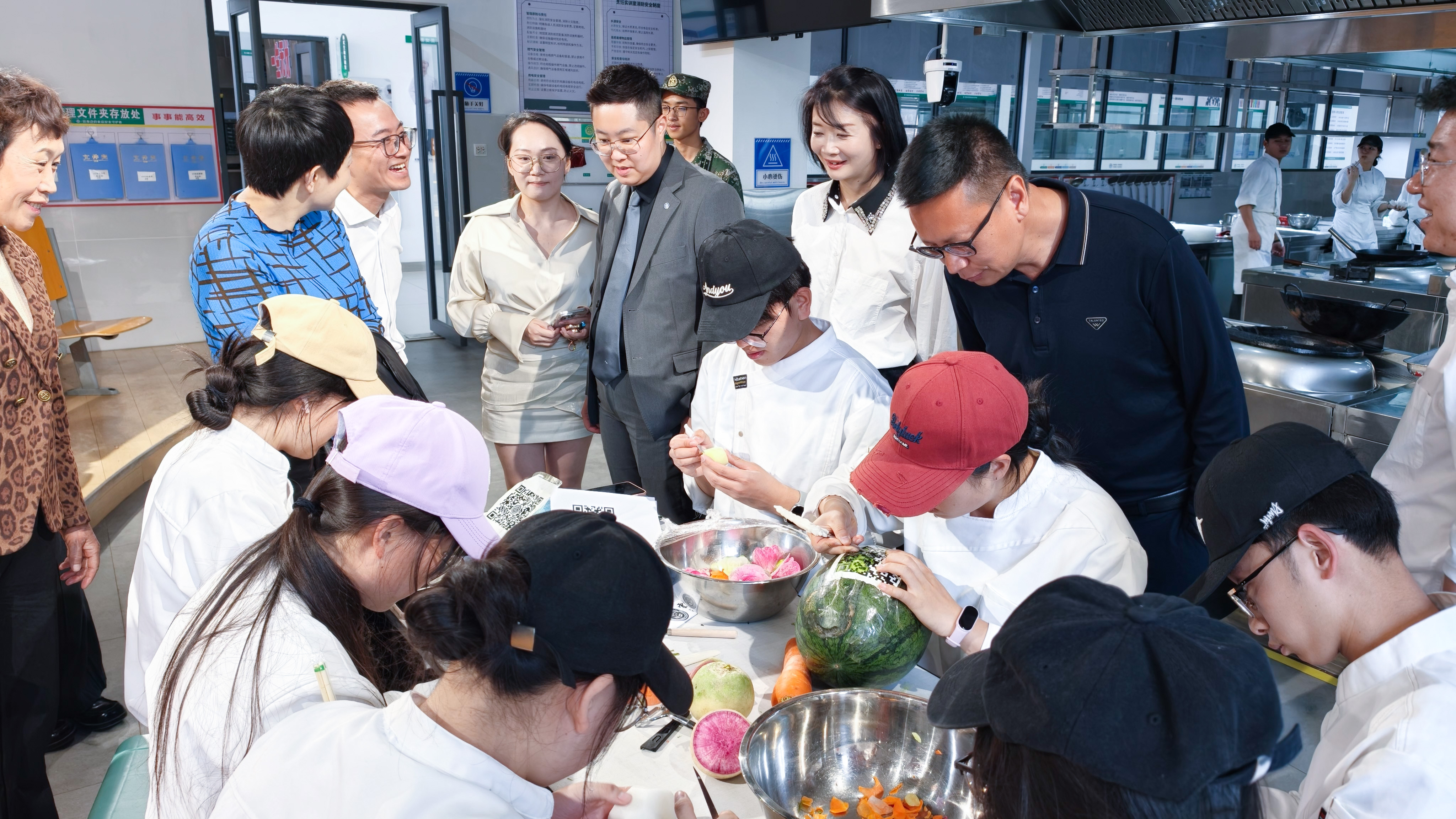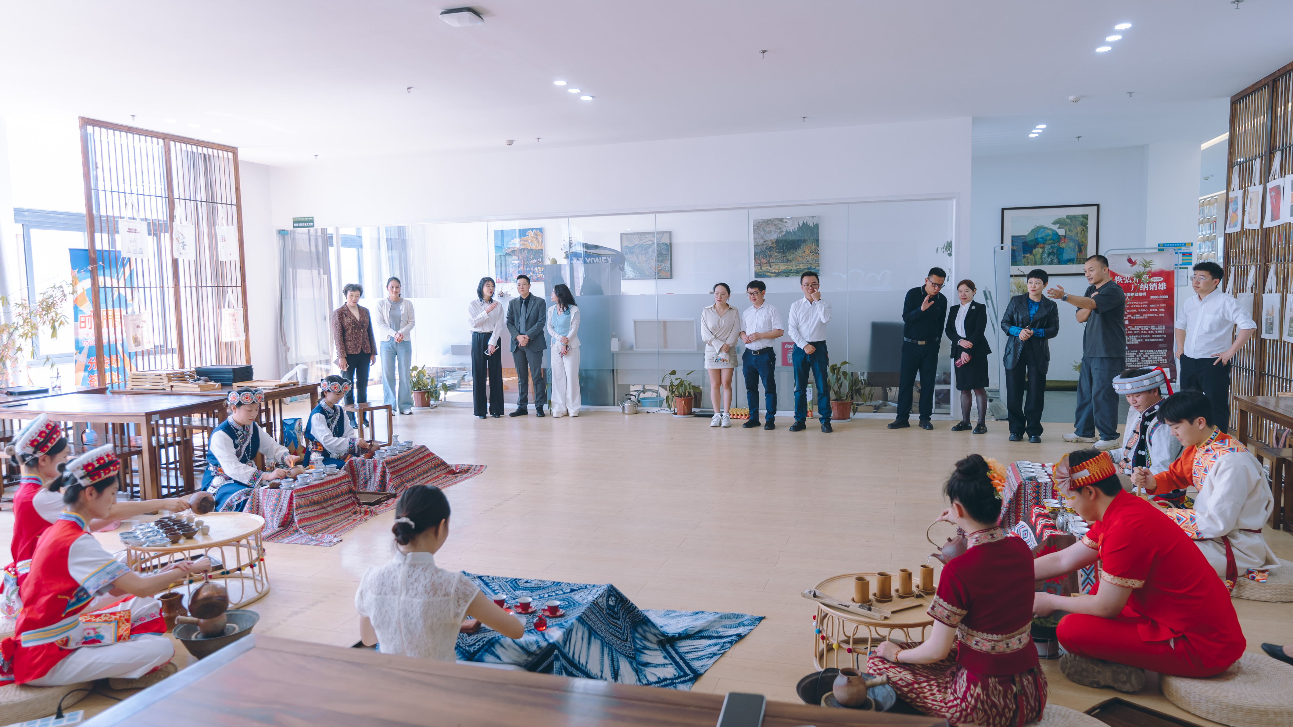 座談會前,在學院講解團的引導下,代表團依次參觀了圖書館、環境藝術設計專業實訓室、包裝策劃與設計專業實訓室、烹飪與食品加工實訓中心及中心花園等場地,并在圖書館二樓觀看民族茶宴石榴紅茶藝表演,品嘗了6個民族特色茶飲。