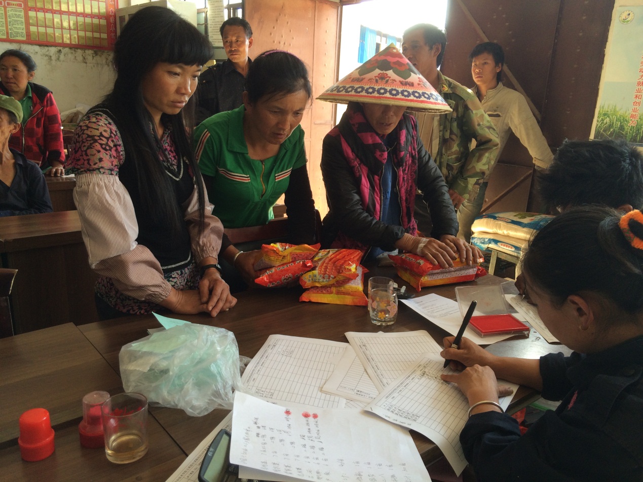 村民領取玉米種子后簽字按手印