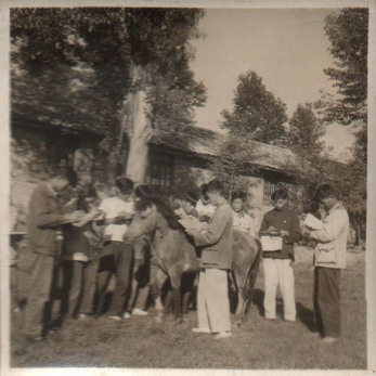 一匹五、六十年代的小馬,被一群五、六十年代的獸醫(yī)專業(yè)的孩子圍著,靜靜地接受他們的研究。