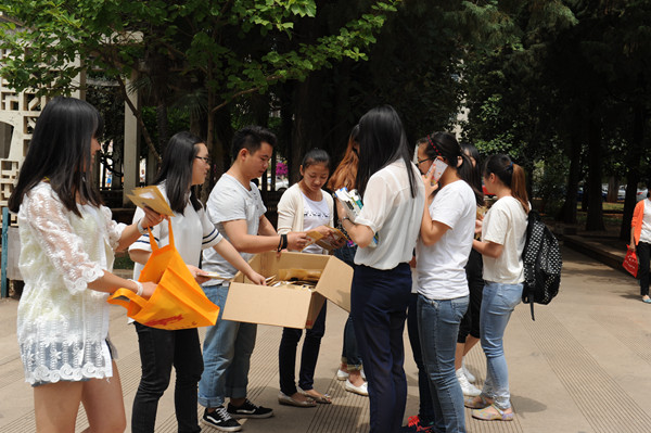 第七屆5.8飲茶日暨“飲茶健康、茶進(jìn)萬(wàn)家”走入高校活動(dòng),讓飲茶走進(jìn)校園。活動(dòng)由學(xué)校團(tuán)委組織發(fā)動(dòng)青年志愿者,向廣大學(xué)生派發(fā)免費(fèi)茶葉,活動(dòng)培養(yǎng)年輕人了解茶葉、習(xí)慣飲茶。與此同時(shí),深入社區(qū)給居民免費(fèi)發(fā)送茶葉。通過(guò)活動(dòng)的開(kāi)展,將健康飲茶的理念引入到高校、社區(qū)。在弘揚(yáng)中華茶文化普及茶知識(shí)的同時(shí),擴(kuò)大了中國(guó)云南5.8飲茶日、中華茶文化在高校、社會(huì)的影響力。(黨委宣傳部供稿)