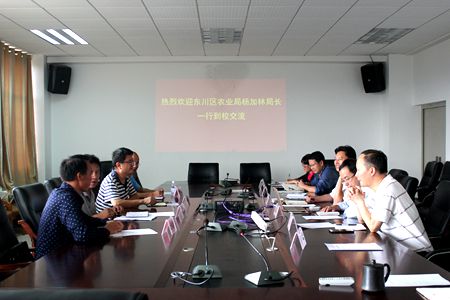 院長助理田應華向楊加林局長一行簡要介紹了學校的歷史和基本情況。楊加林局長介紹了目前東川農業產業發展情況,并希望學院能夠結合東川地區地質、海拔的類型,在農作物選種及規劃方面給予指導和支持。隨后,雙方進行自由交流,會議現場十分融洽。